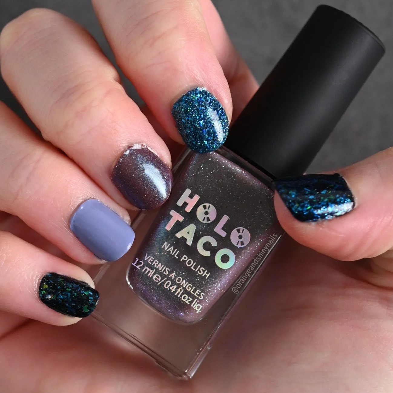 Cool Ranch - a mauve-ish brown jelly polish with blue shimmer (originally prototyped for the Disco Cowboy collection)